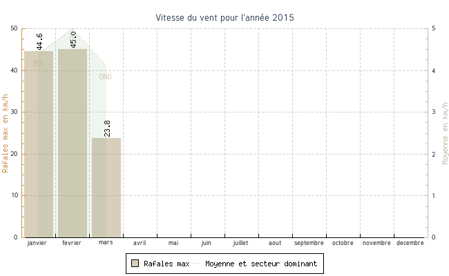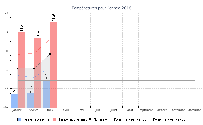 | fevrier | -4.8 °C | 1.2 °C | 15.7 °C | 10.1 °C | 4.6 °C | 5.0 km/h | 45.0 km/h | O |